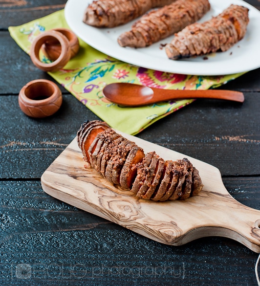 Hasselback Sweet Potatoes w/ Crispy Garlic