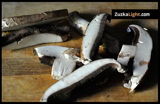 Cut the mushrooms first into 1/4 inch thick slices and then into smaller cubes. I didn't have shiitake mushrooms, otherwise I would have used those. Nevertheless, it still turned out to be delicious.