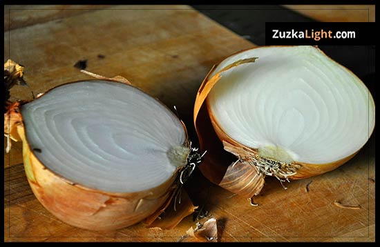 Peel and chop the onion coarsely.