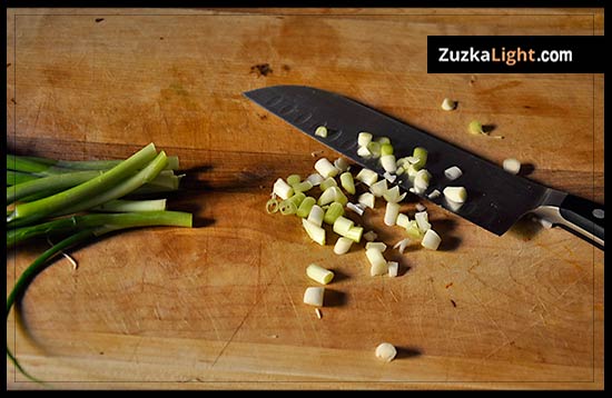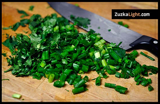 Chop the green onions and cilantro.